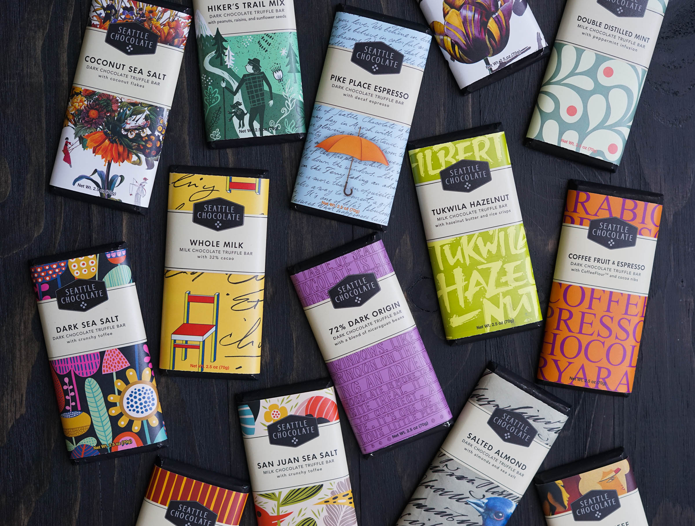 Woman-owned and women-powered, Seattle Chocolate is known for the meltaway center that gives our signature truffles and truffle bars a mouthwatering bite, every time. Crafted to brighten your day, we take care of every detail; from ethically sourced cacao and fun flavors to packaging designed by independent artists we love.